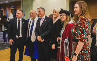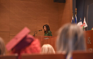 Η εκπρόσωπος του Swansea University, Associate Dean (International), Faculty of Medicine, Health and Life Science, Professor Lisa Wallace, εξέφρασε βαθιά τιμή για την παρουσία της στην τελετή, υπογραμμίζοντας την εξαιρετική συνεργασία που έχει αναπτυχθεί με το IST College. Τόνισε την υψηλή ακαδημαϊκή ποιότητα των προγραμμάτων, την άριστη εκπαιδευτική εμπειρία που προσφέρει το IST College και τη σπουδαία προσπάθεια των αποφοίτων, οι οποίοι πλέον ανήκουν στην κοινότητα ενός πανεπιστημίου που κατατάσσεται στις 30 κορυφαίες θέσεις του Ηνωμένου Βασιλείου και στις 300 καλύτερες διεθνώς. Κλείνοντας, συνεχάρη θερμά τους νέους αποφοίτους, επισημαίνοντας ότι θα αποτελούν για πάντα μέλη της οικογένειας του Swansea University.